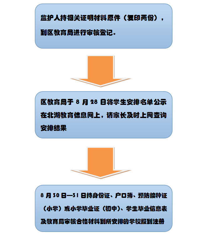 4、学生家长持相关有效材料,在规定的时间内到区教育局指定的地点报名。