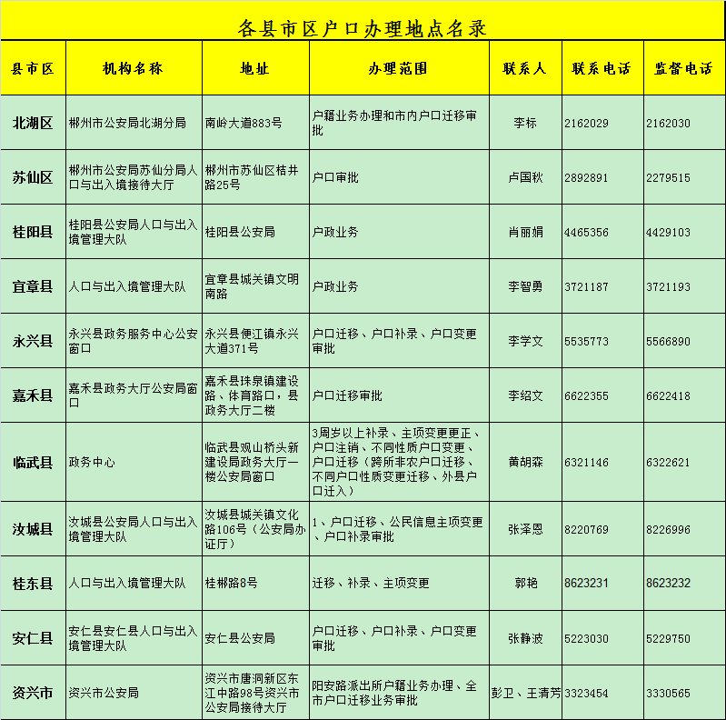 各县市区户口办理地点名录